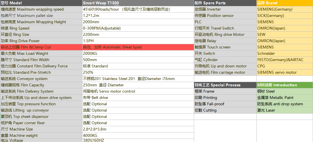 a.高速纏繞  小黃蜂X1300高速立式纏繞機(jī)包裝速度45托/小時起。45/60/90托/小時可選;