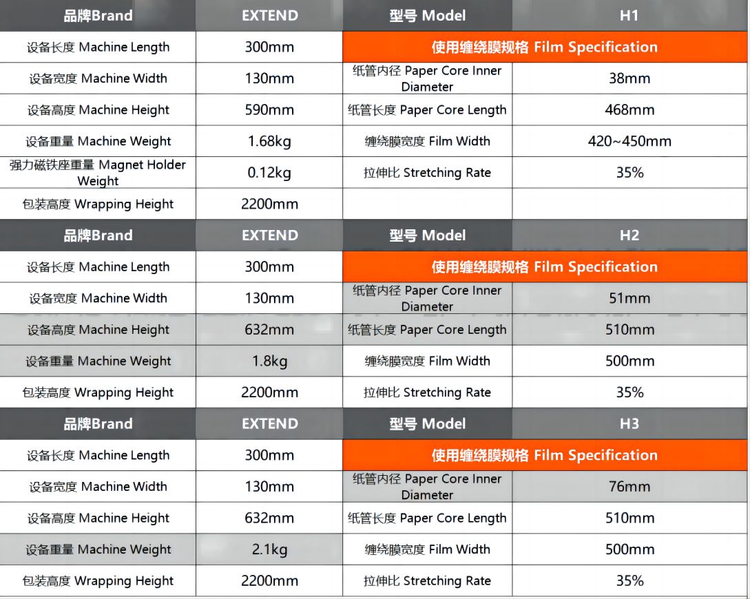小黃蜂EXTEND手持式纏繞器,包含三種規(guī)格,針對(duì)于市面上不同的手工膜都能很好地適用。