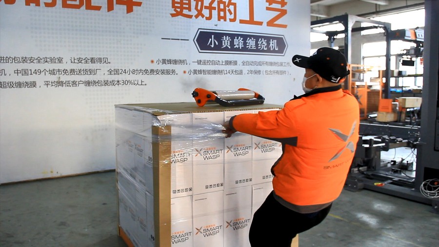 相對(duì)于傳統(tǒng)人工纏繞,可以提高包裝效率,纏繞得更緊密,更節(jié)省。