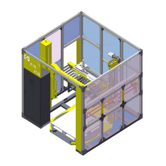 我們拿幾個組合設(shè)備來介紹一下。纏繞打帶一體機,可以實現(xiàn)非流水線的纏繞及打帶工序;碼垛纏繞一體機,可以實現(xiàn)對接到流水線前端直接進行碼垛和纏繞;在線纏繞覆頂一體機,可以在一個工位實現(xiàn)纏繞和覆頂,并且在此工位上還可添加紙護角機來完成三道工序。所以在功能上,組合式設(shè)備可以同時實現(xiàn)多重工序,有效的減少了占地面積,節(jié)省了空間。